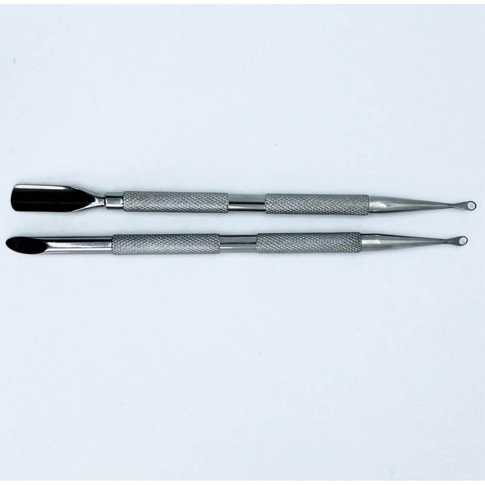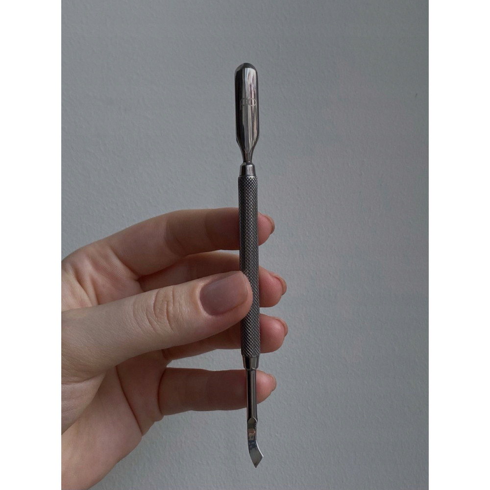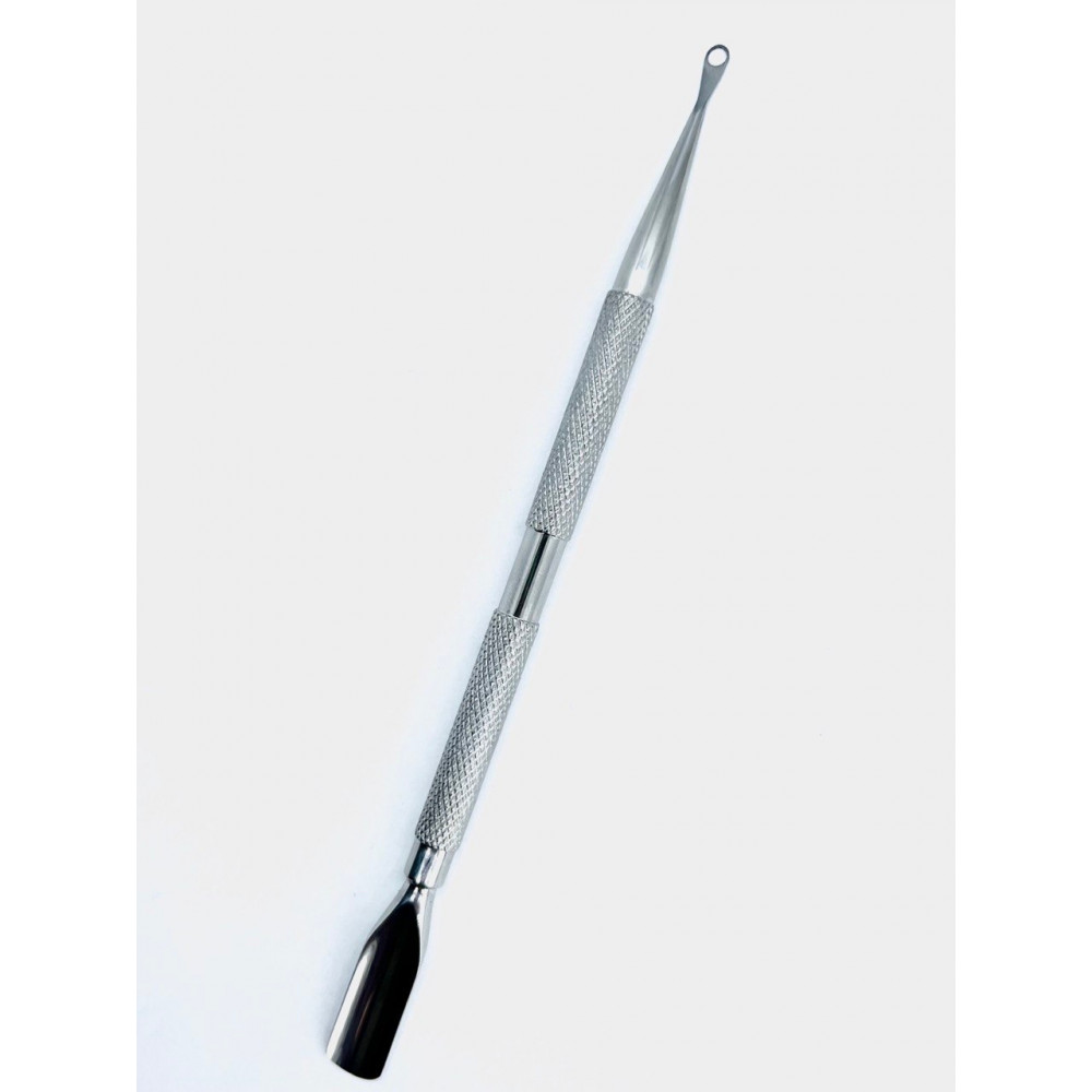Pusher pozwala szybko i bez trudności odsunąć skórki. Oczko jest przeznaczone do oczyszczania płytki paznokcia ze skrzydlika. Kopytko ma profesjonalne ręczne ostrzenie i idealny kształt! Wykonane jest z wysokiej jakości stali nierdzewnej. Długość 140 mm (+/-1mm).