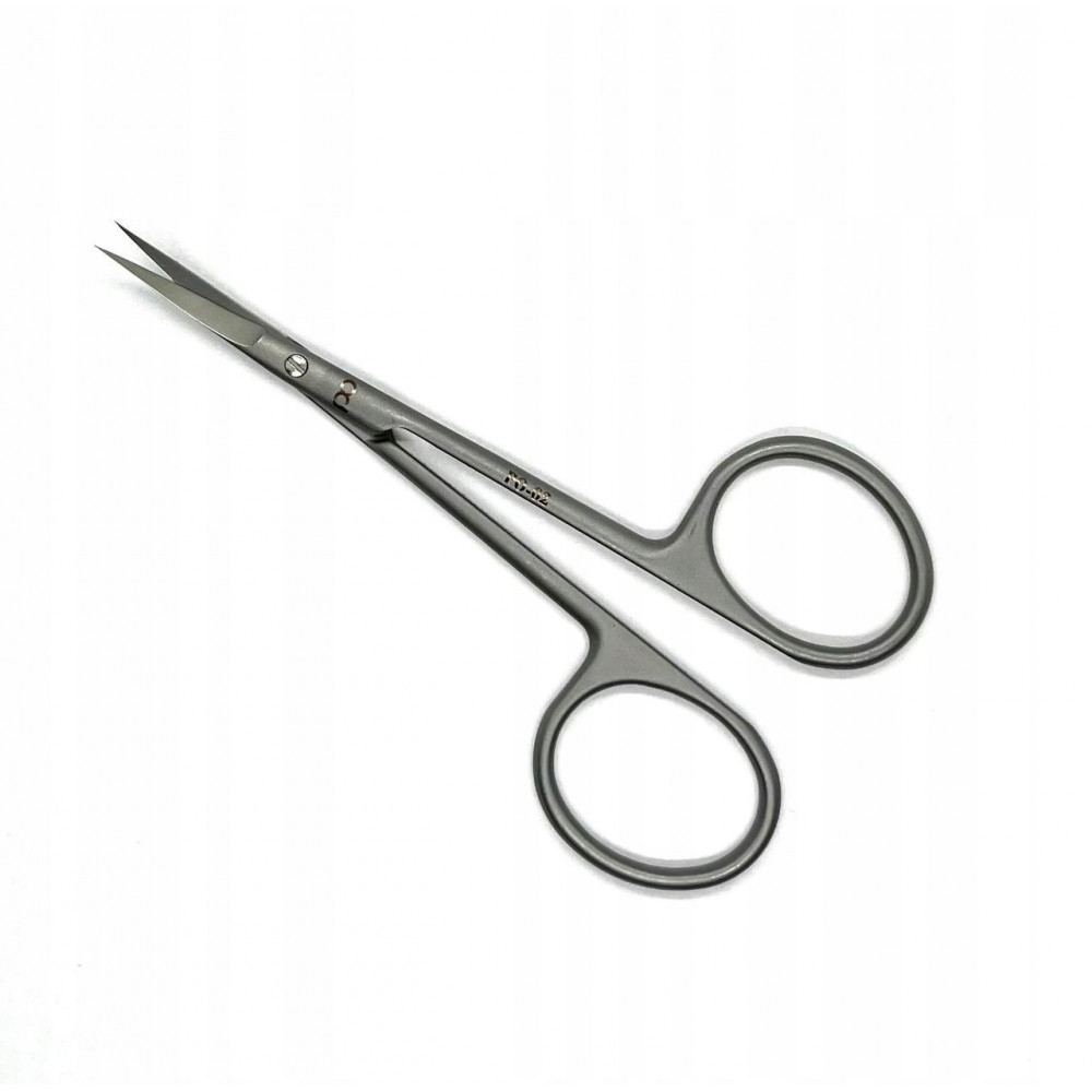 Nożyczki wykonane z wysokowęglowej stali nierdzewnej, która gwarantuje trwałość i skuteczność cięcia. Długość 105 mm (+/-1mm). Długość ostrza 22mm (+/-1mm).